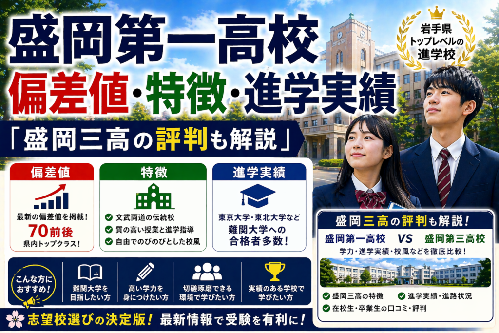 • 盛岡第一高校は岩手県内最難関の公立高校(偏差値68)